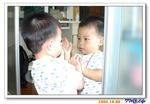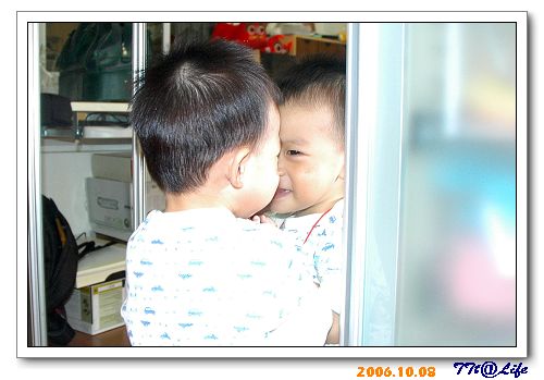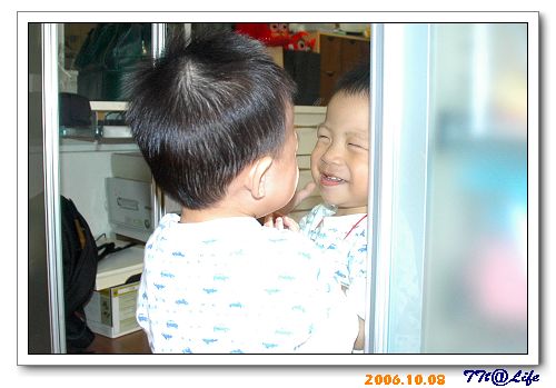 小T一天有好幾次,會跑過來對鏡子做表情,然後笑得很大聲地跑開..