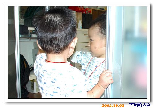 小T可能從來沒看過那麼大片的鏡子,所以....